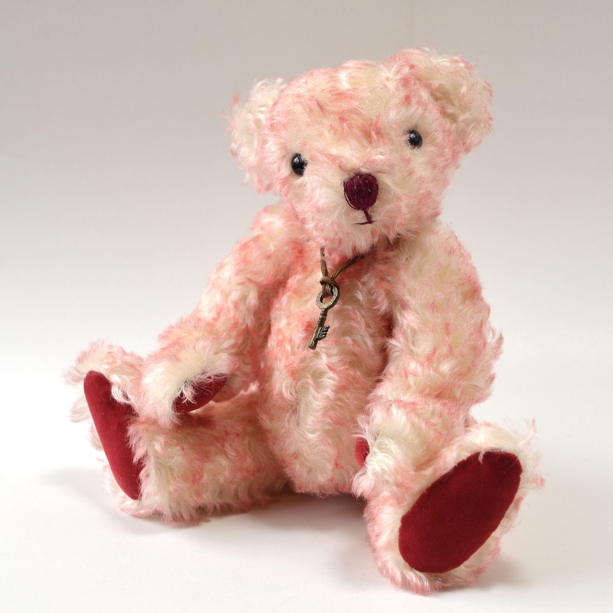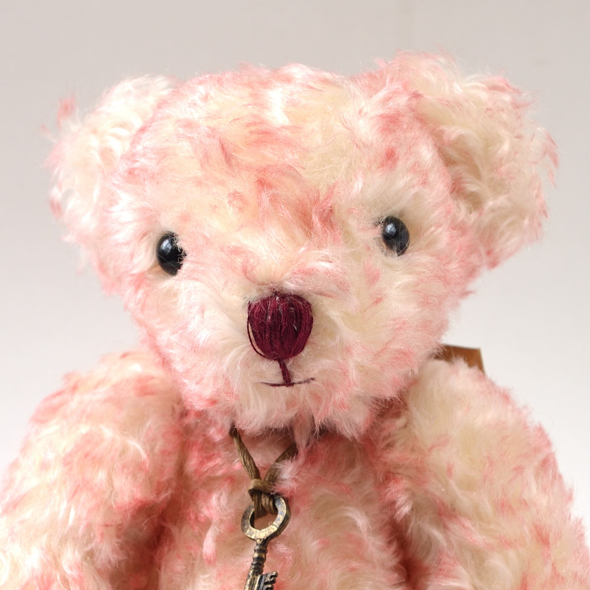 ピンクチップモヘアを使った優しいお顔の本格クラシック テディベアです。
